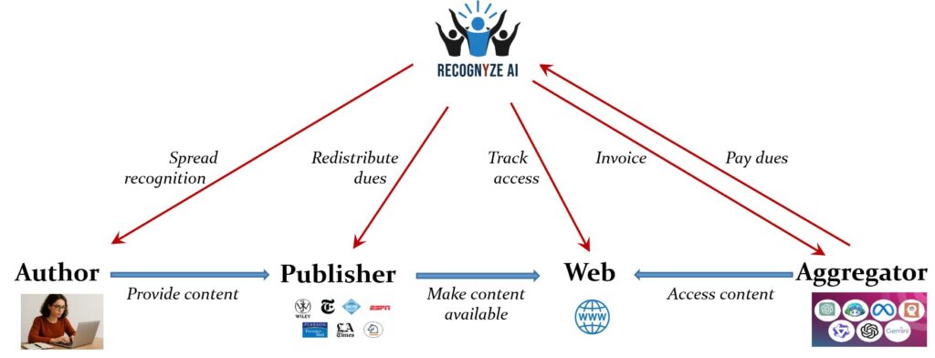 Recognyze AI addresses the crucial issue of rewarding content creators for the use of their work by LLMs and other aggregators.
